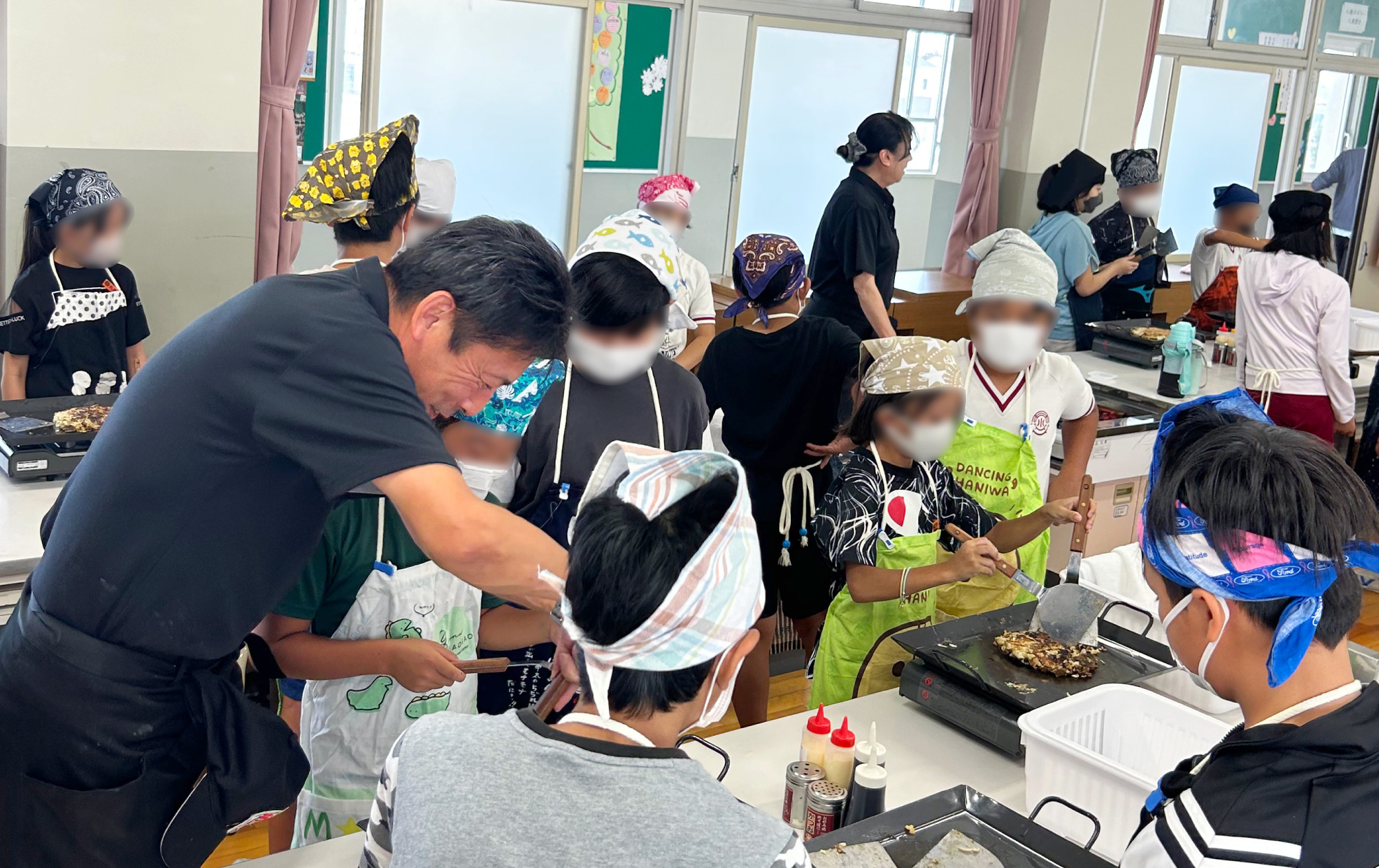 子供たちが実際にお好み焼きを作る様子訪問授業では主に子どもたちに「お好み焼き」を作ってもらいます。