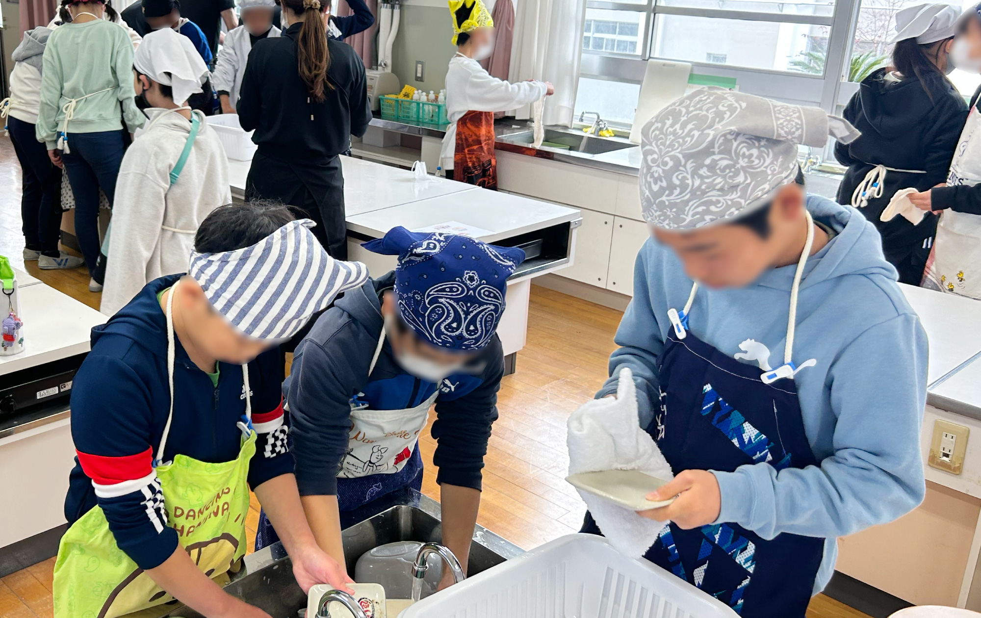 網干西小学校での授業の様子中には、キャベツが苦手で・・・。と嘆く子も。普段キャベツが出てきたら残してしまう子だって、自分が頑張って作ってみんなと一緒に食べると「おいしい!」と言葉にし、「キャベツたべられた!」と報告してくれる子もい