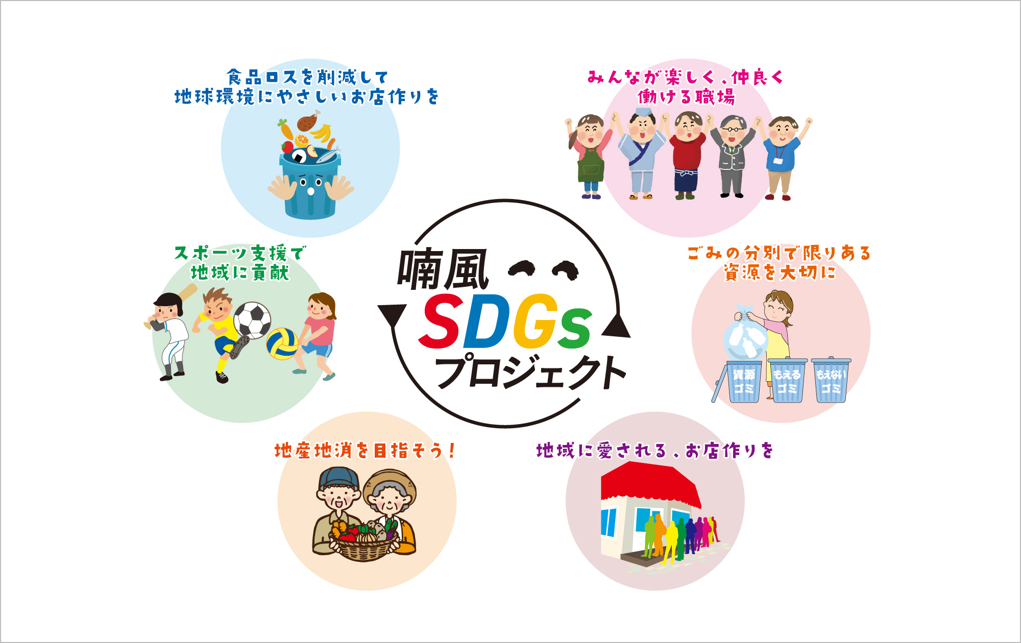 SDG’s全17の目標のうち、喃風として貢献できる目標をいくつか掲げ、